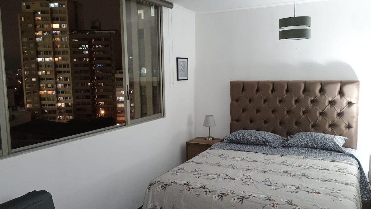 Departamento independiente frente a la Universidad católica y San Marcos (estadio), Mall Plaza San Miguel y conocidos restaurantes. Excelentes conexiones con el transporte. Linda vista a la ciudad Cama Queen, tv 43", wifi de alta velocidad kitchenet equipado, rollers, closet de dos puertas kitchenette incluye microondas, olla arrocera, hervidor eléctrico, icuadora, vajilla y utensilios En el baño con tina y ducha de agua caliente, se incluyen toallas y secadora de cabello Recepción 24/7