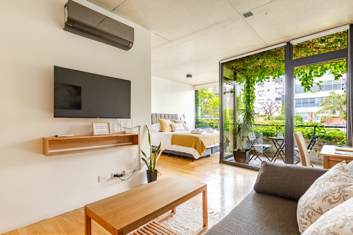 Welcome to Palermo! Fully equipped place to rest and be ready to go out, right in the middle of the Soho scene (2 blocks away from Plaza Serrano/Cortazar!). The Studio was built brand-new, inside a house from the beginnings of the 20th century, keeping the facade with it's original door and windows. Please read all the following details so everything is as you expect. Thanks!
