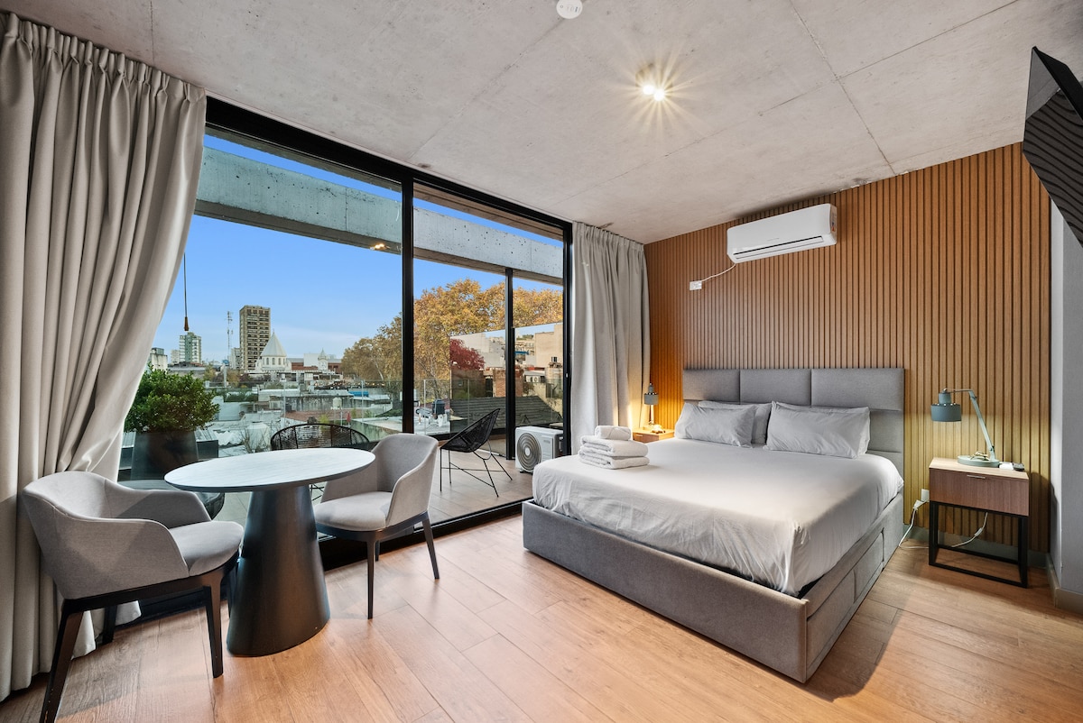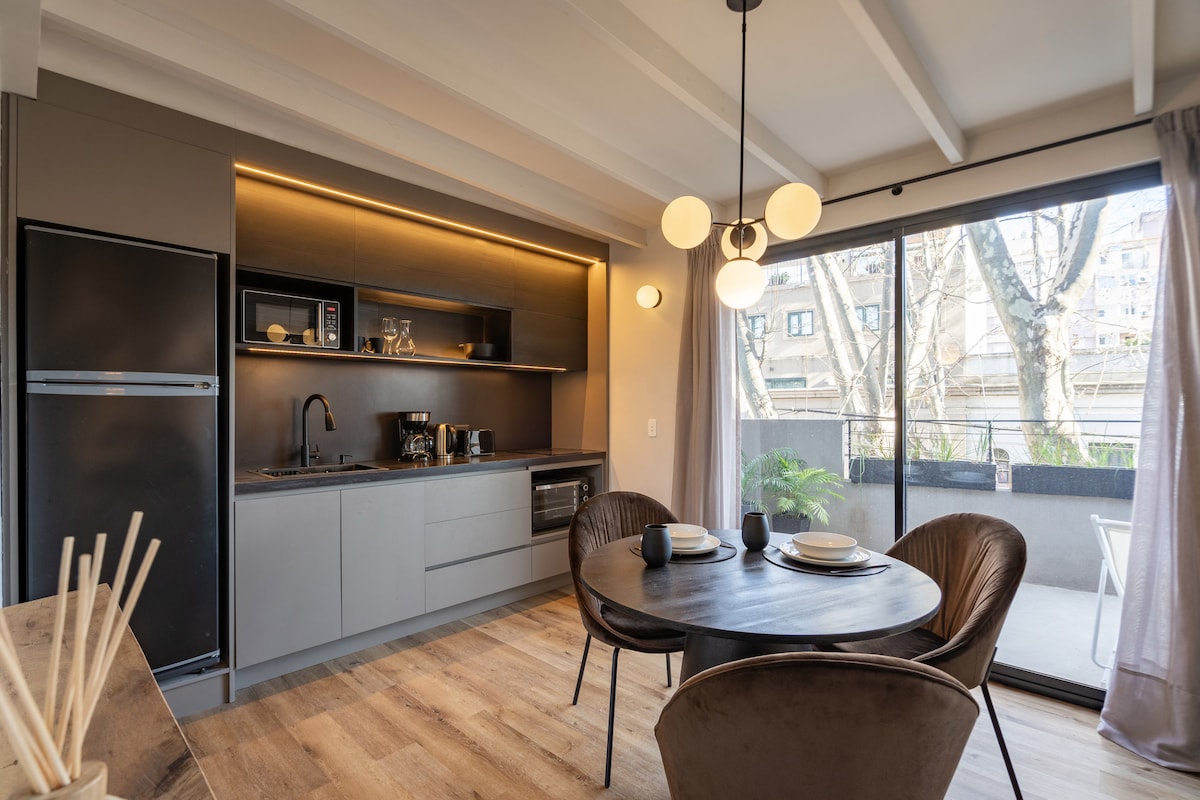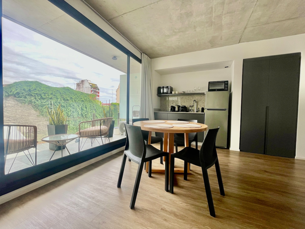 Viví Buenos Aires desde este exclusivo departamento de 1 dormitorio con balcon aterrazado. El equilibrio perfecto entre confort, estilo y una ubicación inmejorable. ✔ Dormitorio con cama queen ✔ Living moderno con sofá y Smart TV ✔ Cocina integrada completa ✔ Baño completo ✔ Comedor de revista ✔ Balcon aterrazado privado ✔ Wi-Fi ✔ Aire acondicionado Este espacio es ideal para una estadía cómoda, cálida y memorable. Todo fue diseñado con atención al detalle para que disfrutes cada momento.