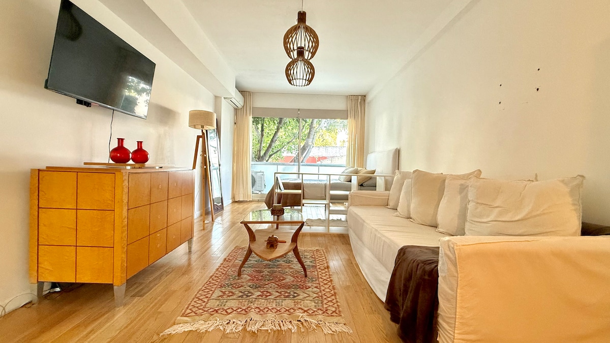 Descubre nuestro encantador monoambiente en Palermo Hollywood. Apartamento muy amplio, moderno, confortable, luminoso y en excelente ubicación. Zona muy cómoda y segura. A pocas cuadras del metro y a pasos de las principales líneas de autobuses. Cómoda cama, mucha luz natural. ¡Tu lugar perfecto en Buenos Aires! Totalmente equipado y con muy lindos amenities. Todo el equipamiento es de primera calidad, tanto los muebles como la ropa de cama. Y nosotros siempre disponibles