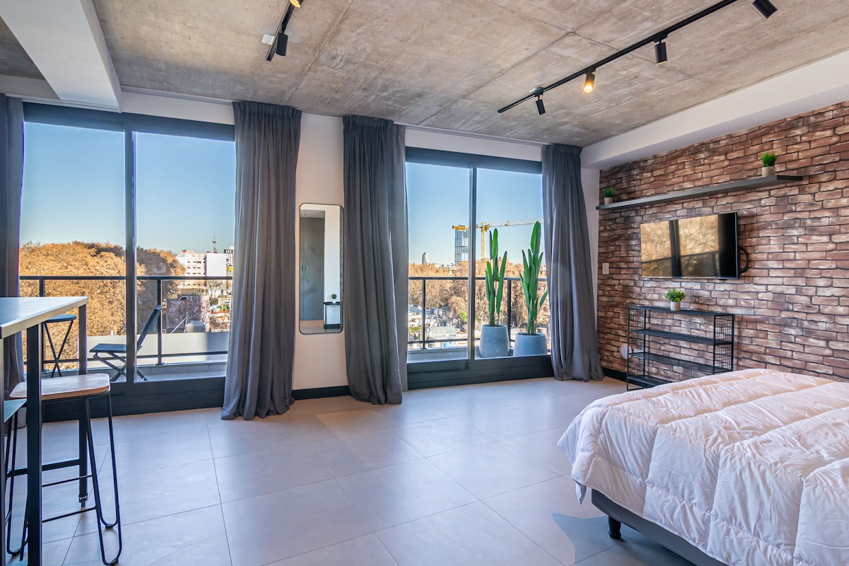 Enjoy this modern single room setting, full of natural light and with an open view that creates a unique atmosphere. Fully equipped with full kitchen, air conditioning, Wi-Fi and cable TV. Relax in the building's pool after a day of exploring. Located in the heart of Palermo Soho, surrounded by restaurants, bars, design shops and art galleries. A vibrant area with an excellent connection to public transport, it is the ideal place to experience Buenos Aires!