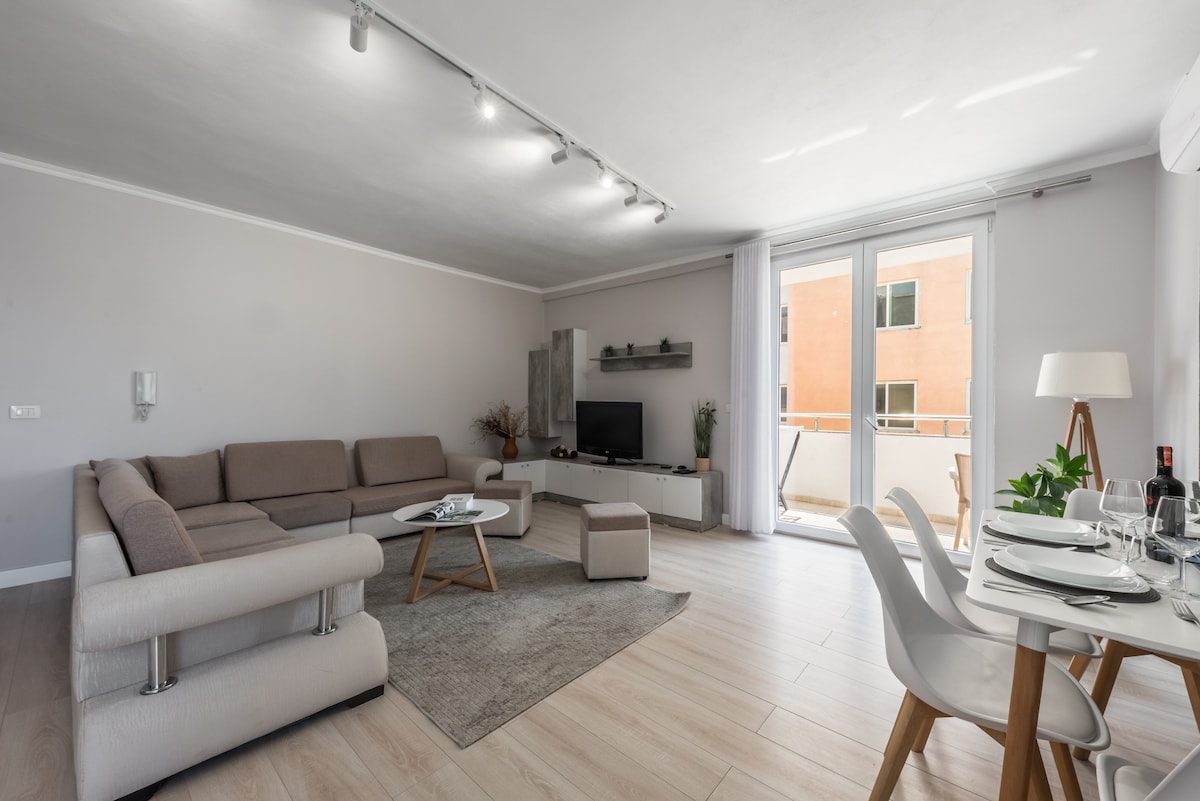 Enjoy breathtaking sea views from the large balcony — perfect for morning coffee or relaxing evenings. The bright living area opens onto the balcony, creating a light-filled, airy atmosphere.