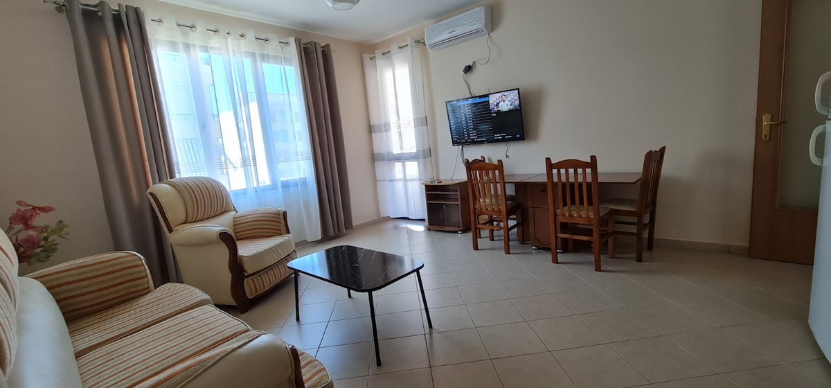 This nice apartment,, fully furnished may serve as a perfect vacation rental if you are looking forward the sandy beaches of Albania. The area around provides all necessary needs: restaurants, bars, grocery stores. Private parking included.