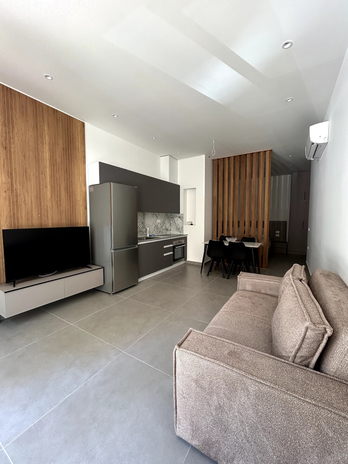 🏡 Hilltop Studio with beautiful Sea Views** Escape to our charming studio near "Uji i Ftohte" in Lungomare. Enjoy a fully equipped kitchen, modern bathroom, cozy sleeping area, and a spacious balcony with sea views. 📍 Perfect Location Beaches, cafes, markets, and restaurants are 5-15 mins away. The bus stop (4 mins) connects you to Vlora’s city center for 40 cents. Hassle-free self-check-in/out. ✨ Your perfect getaway awaits!