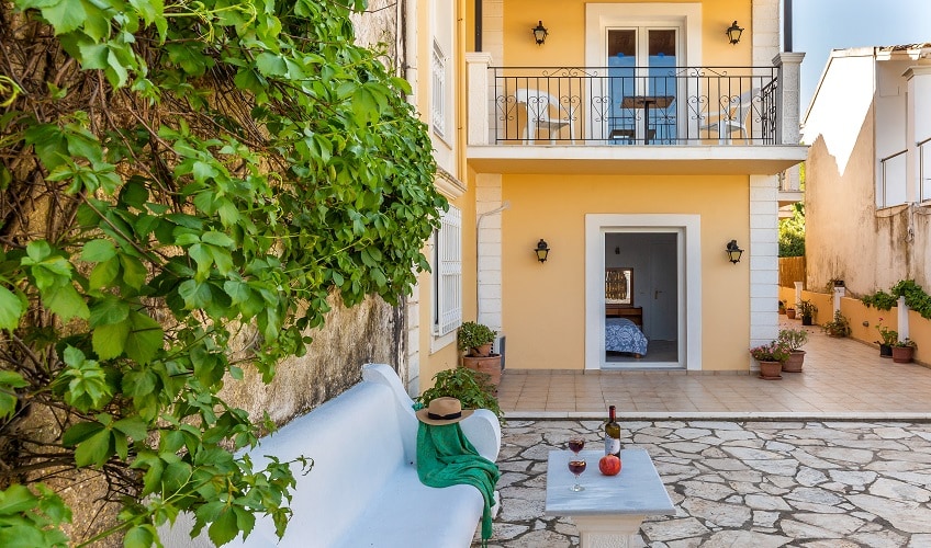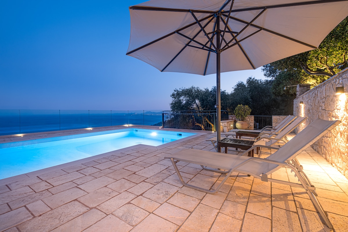 Villa Melanthi has luxury in abundance. It sits in an elevated position on a hillside just outside Kassiopi village.The villa is surrounded by carefully designed gardens on different levels with scattered beautiful plants, orange and lemon trees. The infinity pool with its crystal waters is well designed for the convenience of the villa’s guests.The views from here are absolutely breath taking, as the countryside greenery contrasts perfectly with the cobalt-blue of the Ionian Sea.