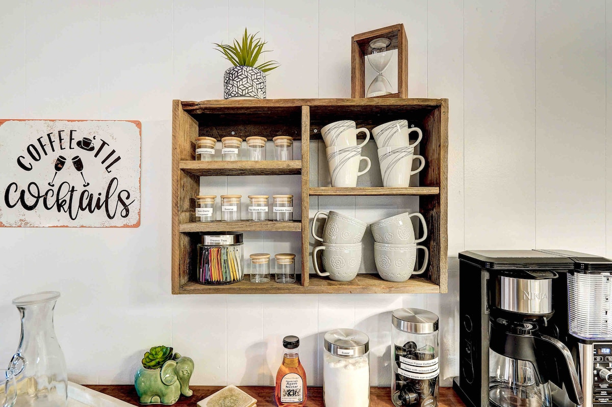 400 roomy square feet defy the term "tiny home!" Why compromise on your next trip to Austin when this space combines the convenience of a great location with the privacy of a completely separate property? Our gorgeous tiny home with expansive windows and 12-foot ceilings lets in abundant light from its private, fenced yard while attending to your every whim, from an evening out on the stone patio under string lights to an invigorating morning underneath the massage of two powerful shower heads.