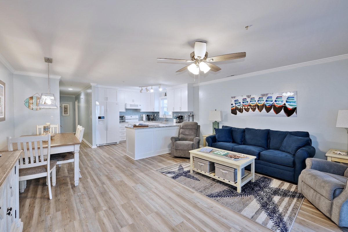 Enjoy the crisp autumn breeze and ocean views from your porch daybed, or curl up with a warm drink and a good book by the fireplace. Perfectly located on one of the Island’s most desirable stretches of sand featuring the only year-round dog-friendly beach! With easy beach access and Pier just steps away, you can soak in the season however you like - a quiet morning stroll, a sunset by the water, or a cozy night in. This peaceful oceanfront Condo blends comfort and charm for your Fall escape.