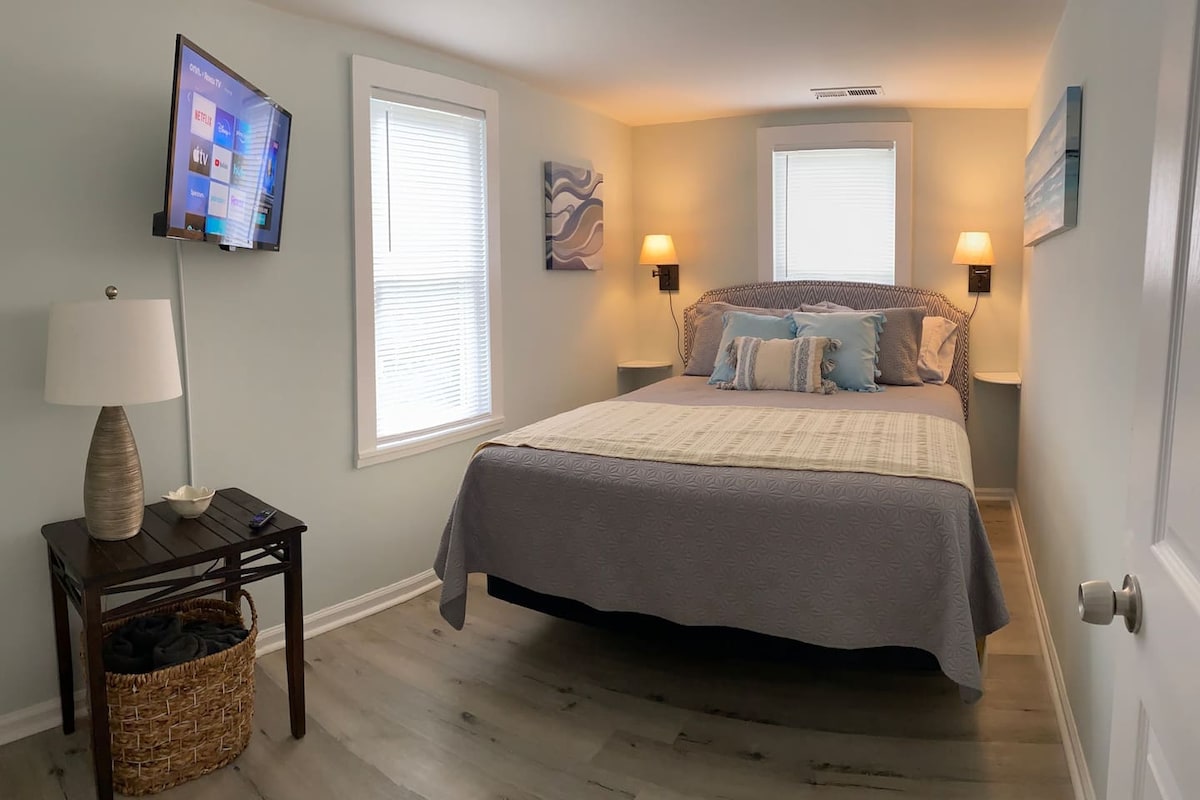 Welcome to The Little Ray! NEWLY Renovated in 2025. 3 minute walk to the sand! 5 Minute walk to the boardwalk. - Private coastal, 1 Bedroom, 1 Bath, Full size kitchen. Downstairs beach cottage in Carolina Beach. Note : The upstairs unit is a separate unit. - 1 block from the beach and short bike ride to the boardwalk. Next door to local restaurants, The Spot & Uncle Vinny's Pizzeria. - Follow us on IG @casasinthecarolinas !