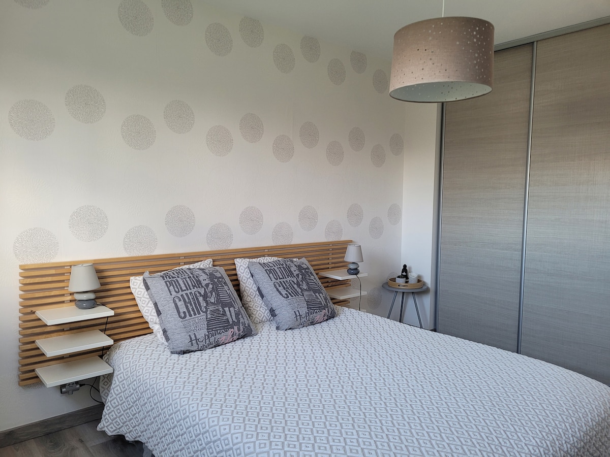 Appartement calme et sécurisé situé au 2eme étage, grand balcon orientation ouest, place de parking réservée dans une cour intérieure fermée par un portail. A 7 min à pied de la gare, (passer par la passerelle).10 min du centre ville à pied. 10 min en voiture du port avec ses restaurants et bars. Double vitrage et volets électriques. Résidence récente. Pas de frais de ménage