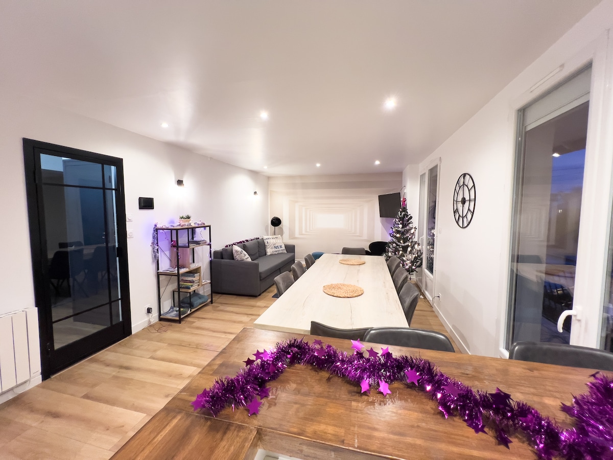 Jolie maison familiale de 150m² sur 2 niveaux pouvant accueillir confortablement 6 personnes ! Orientée plein sud, la pièce de vie est entourée de belles terrasses aménagées face à un joli jardin arboré de 400m² et d’une piscine chauffée (mi-mai/mi-septembre) ! Un habitat insolite, installé au fond du jardin offre 2 couchages supplémentaires à la belle saison pour une nuit sous les étoiles !