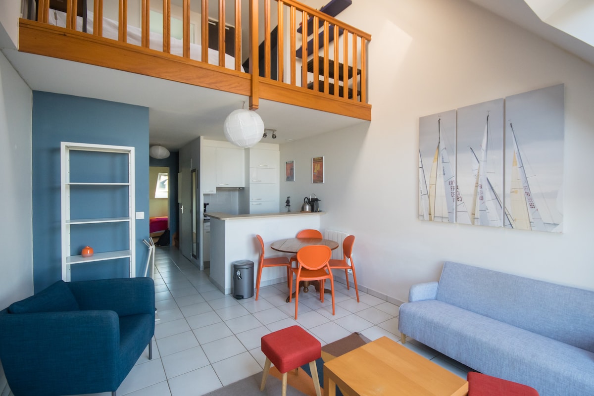 Bienvenue au Duplex "Lomy" entièrement rénové✨ 🌊Parfait pour une escapade en couple, ou en famille, le logement se compose: -Chambre avec lit 160 &Coin nuit avec 2 lits enfants -SDB avec balnéo (180 x 90)-douche de pluie -Sauna 2 personnes sur la terrasse -Salon/Cuisine équipée -Grand balcon avec vue imprenable sur le port, idéale pour un café au lever du soleil ou un apéritif au retour de balade! 🚗Stationnement privé Wifi inclus ⚠️3eme étage sans ascenseur