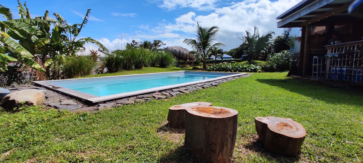 Vous êtes les bienvenus dans cette villa indépendante de style Créole type F2, calme, ventilée sur un terrain de 822m² arboré et clôturé. Chambre climatisée, cuisine entièrement équipée, salon avec TV TNT et le WIFI, . Piscine non sécurisée de 3.5mx2mx0.7m. De la terrasse en prenant votre petit déjeuner ou dans votre hamac vous bénéficierez d'une vue sur mer et montagne. Plage à 300m. Réserve Cousteau 25 km, Jardin Botanique de Deshaies- Parc Floral 8 km. Commerces, médecin, dentiste à 10mm.