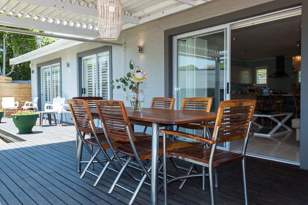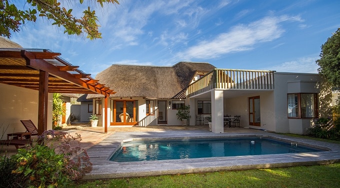 Whale Rock Beach Villa is close to the beach with spectacular views. You’ll see the sea, hear the sea and love the luxury of the space. It’s fabulous for families (with kids) and has a magnificent pool, patio with built in pizza oven, movieroom and bar as well as a lookout deck complete with boma firepit for the true African experience.