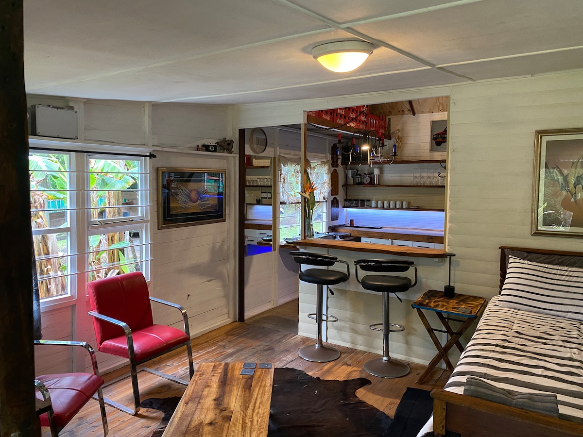 Large, sunny, studio apartment with views, private veranda with outdoor seating, lounge area, kitchenette, TV. Jacuzzi and bbq with outdoor lounge. Additional queen bedroom en suite available on request with separate access. Perfectly located in a tranquil setting. 5 Minute walk to the beach, lagoon for water sports & swimming and great restaurants. A short drive or cycle to the centre of town for shopping, restaurants & activities. Offstreet parking. Free wifi.