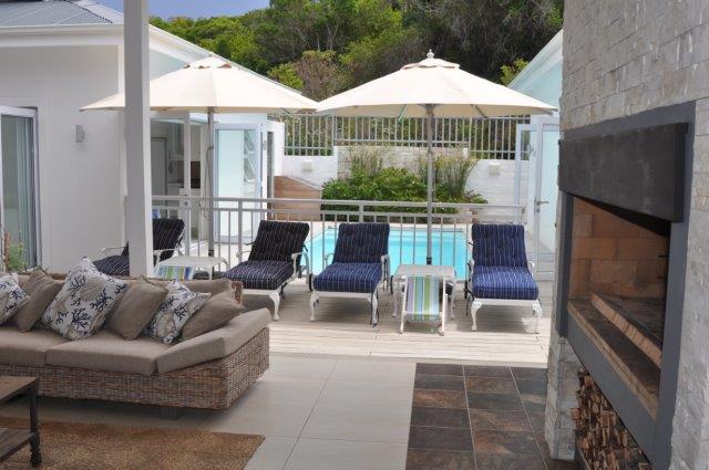 The beach is a 2 min walk away. The house consists of six en-suite bedrooms. There is a fully-equipped kitchen, a 12-seater dining table, downstairs lounge and entertainment areas. In addition, there is an upstairs TV lounge. Guests love the indoor braai (barbecue) and pizza oven. There are fireplaces to keep you warm; fire wood provided. Exclusive-use pool overlooking the vlei with deck area for sunbathing and stunning views, plus outdoor showers. Comes with secure parking and free WiFi.