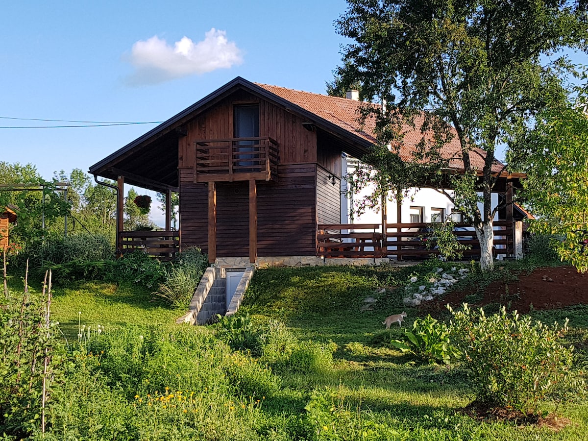 The VITA NATURA Estate is situated in a unique natural environment in the very vicinity of the Plitvice Lakes National Park, on a sun-kissed hill surrounded only by peace and quiet. The Estate, located on a spacious meadow, consists of the two wooden houses made of natural materials, and is completely furnished with unique, hand-made solid-wood furniture items produced by local artisans, which lends the house special coziness and warmth.😀