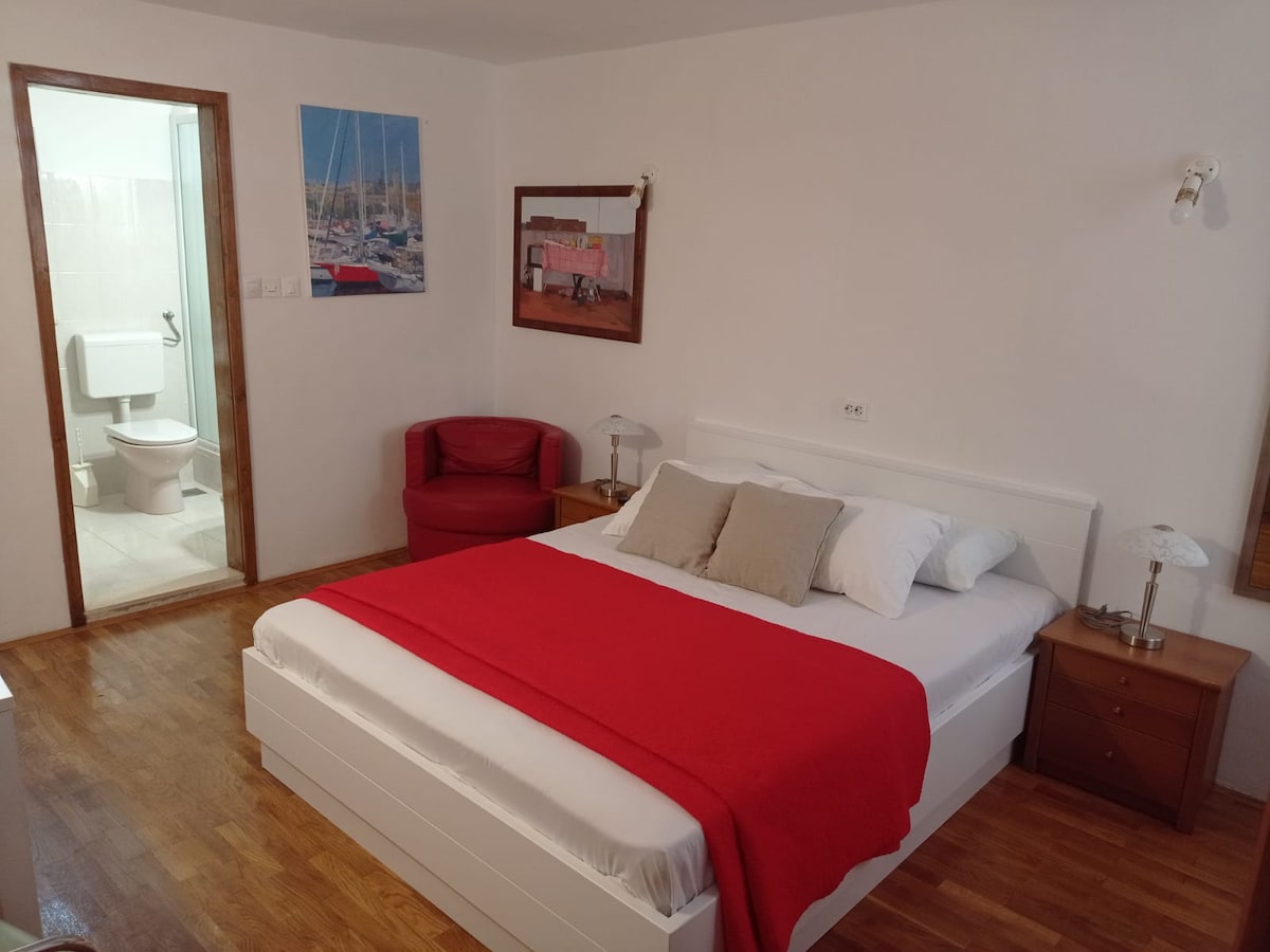 Our simple yet comfortable two bedrooms, diveded for privacy from the rest of the flat, are located in the very center of Cavtat, just few steps away from the sea and harbor promenade. We are in a pedestrian zone between April and October. No car access directly to the house. There is a ramp at the entrance to the old town. Communal parking 🅿️ is 200 meters away (upon a fee). We do not offer a parking space.