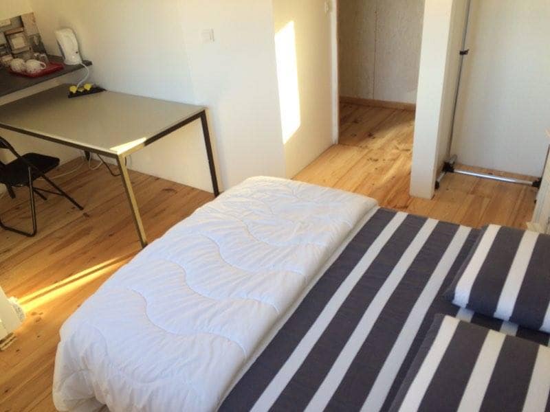 Small seaside, independent garden room with private bathroom for one person. Just a 5 minutes walk from the beach and a 10 minutes cycle from shops and restaurants. Private entrance and use of back garden terrace. A bicycle is available free of charge. There is Wifi, small fridge, ,electric kettle , coffee machine and microwave. Please note that there is no kitchen or tv. Bus stop nearby. I am an English speaker and live just beside the studio . Some noise possible due to next door renovation