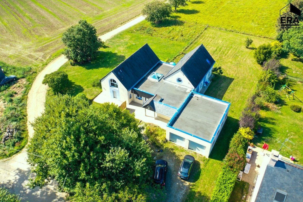 Villa spacieuse, au calme d'une impasse, équipée d'une piscine chauffée l'été et jaccuzzi. Idéalement située entre Finistère et Morbihan pour visiter la Bretagne. GR34 en contrebas de la maison, à 5mn à pied d'une magnifique plage de galets La maison peut accueillir 8 personnes confortablement 4 chambres à l'étage Bel espace de vie, un jardin de 3000m2 non clos, Grande terrasse Cuisine équipée Salon avec canapé, écran plat Table salle à manger 10 personnes Maison non fumeur Animaux non admis
