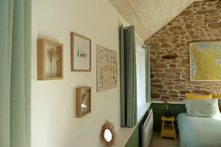 ★Évadez-vous à La Parenthèse Moncontouraise, au cœur de la campagne bretonne, avec spa privé (sauna & jacuzzi). Calme, détente et bien-être garantis. ★ Une parenthèse de bien-être à deux, entre nature et volupté. À Ploeuc-l’Hermitage, le temps s’arrête, la lumière douce et le silence de la campagne créent une ambiance apaisante. 💎 Les points forts : 🛏️ Literie confortable 🍳 Cuisine équipée 🌞 Toit terrasse avec vue sur la campagne 📶 WiFi 🔑 Arrivée autonome