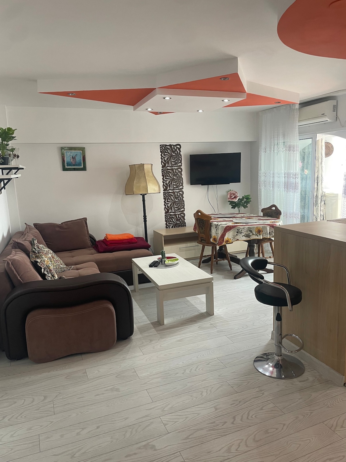 Decomandat, spațios și luminos. Wi-fi, AC și TV în fiecare cameră, bucătărie complet utilată, având toate cele necesare pregătirii/servirii mesei, recent renovat și introdus în circuit. Lenjerii și prosoape de rezervă. Mașina de spălat automată. La cerere, servicii suplimentare de curățenie și transfer de la/spre aeroport. Restaurant pe aceeași stradă ( 1 min distanță) si supermarket nonstop la 5 minute de mers pe jos. Vă așteptăm cu drag! ❤️