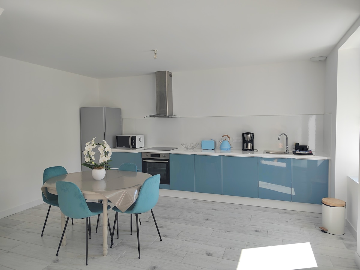 15 m² studio, close to the city center and riverside, with a view of the Locmaria neighborhood. Located on a quiet street, it offers everything you need for a comfortable stay: a fully equipped kitchenette (sink, electric cooktop, refrigerator), TV, private bathroom with shower, toilet, and washbasin, and a 160x200 sofa bed. !! Venetian blinds for light control (no shutters). Perfect for business trips or internships, with self-check-in via a key box.