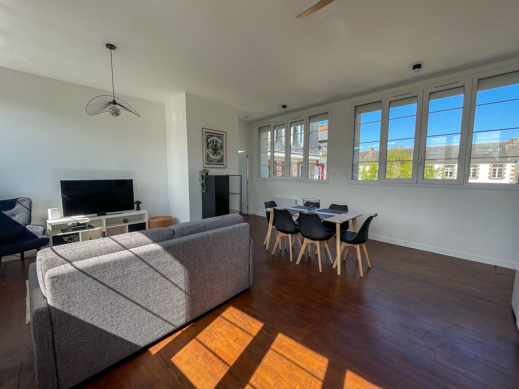 Lumineux appartement T2 au 3 ème étage sans ascenseur au coeur du vieux Paimpol, avec belle vue sur les toits, proche de la gare SNCF, le port et tous commerces à pied, depart en navettes pour l ile de Brehat. Marché animé le mardi matin à 50m. Plusieurs parkings gratuits. Situation idéale, proche plages et île de Bréhat, . 1 chambre lit 2 places . (le canapé n'est pas un couchage supplémentaire) Local à vélo disponible et location vélo a proximité. Possibilité lit bébé sur demande.