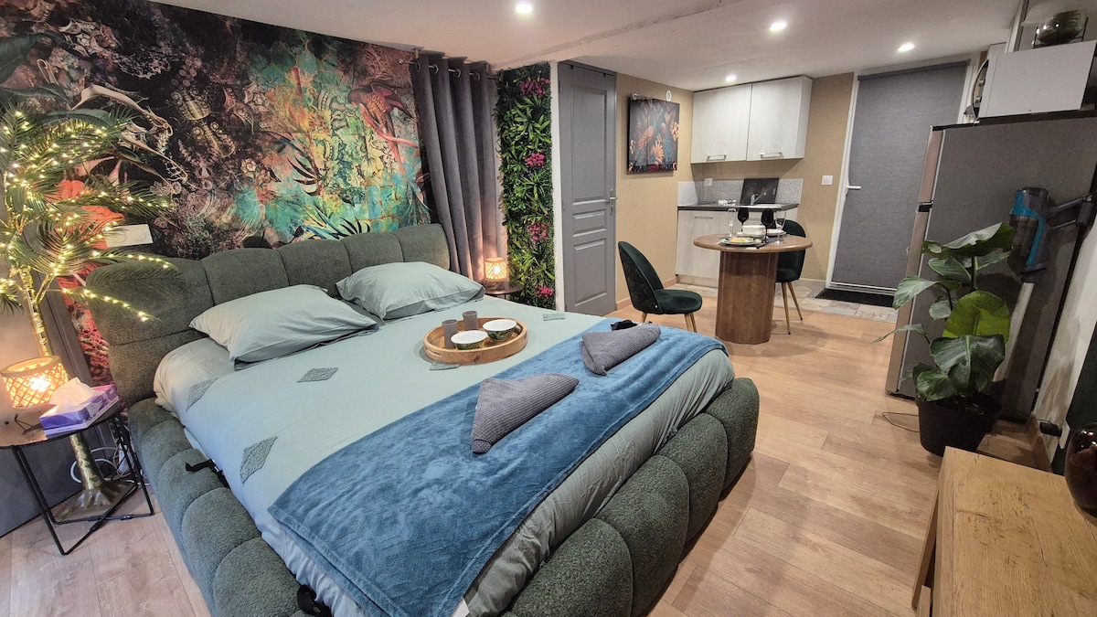 Bienvenue à la Maison Dulse, parfaite pour une escapade romantique. Profitez de notre espace bien-être avec sauna et jacuzzi réservé aux adultes, à quelques mètres de votre habitation, offrant une vue sur le jardin du jacuzzi. Détendez-vous avec le poêle à bois, le bois étant fourni. La cuisine équipée est prête pour vos talents culinaires. La Maison Dulse, avec son mariage parfait entre confort, détente et intimité, est l'endroit idéal pour créer des souvenirs inoubliables à deux.