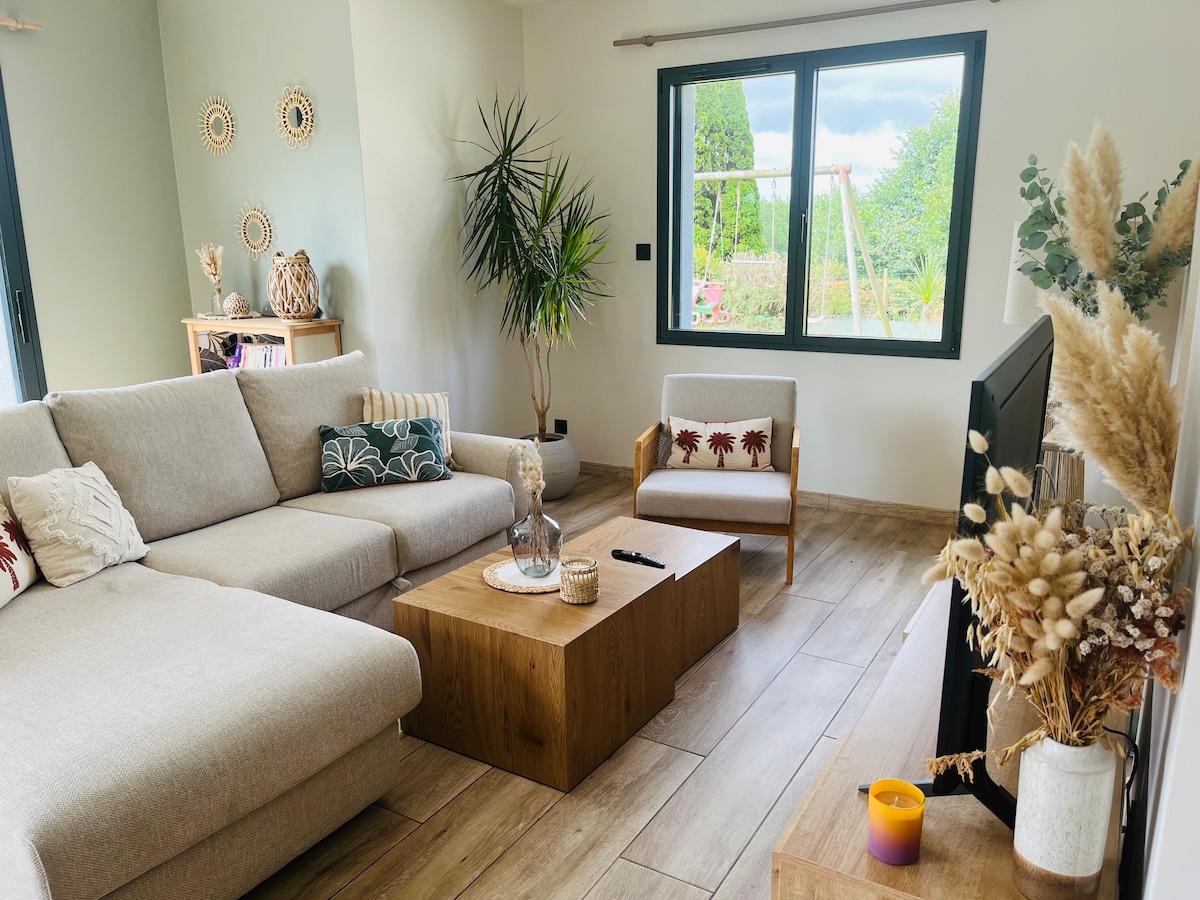 Nous avons aménagé cette chambre dans une partie de notre maison. Vous avez un accès privé vous permettant d'aller et venir à votre guise. Vous disposez d'un lit 160 cm, une salle de bain avec douche et WC et d'un accès au jardin. Mais aussi d'un côté détente avec une table basse et des fauteuils, et une table et deux chaises permettant de prendre le petit déjeuner. Nous vous proposons en supplément le petit déjeuner si vous le désirez. Vous ne disposez pas de cuisine dans la chambre.