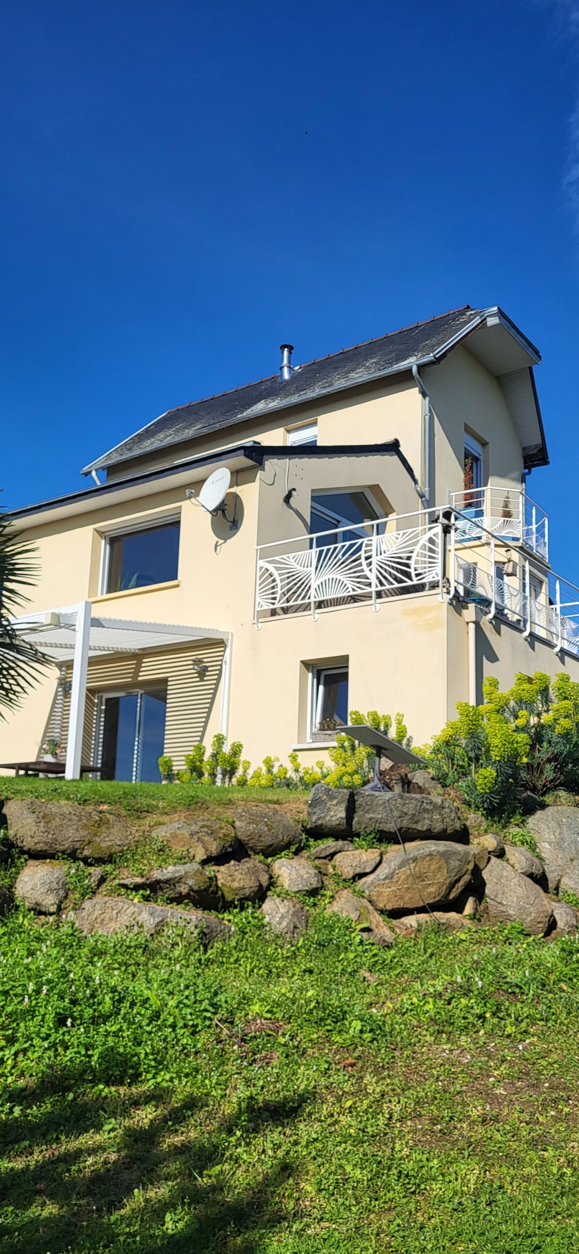 Maison contemporaine, vue exceptionnelle et unique sur la mer, les îles de Port Blanc, la baie de Pellinec, les 7 îles au large de Perros Guirec. Située près du petit port de Buguéles, à quelques minutes à pied des premières plages et à 2,5km du bourg de Penvenan, avec tous ses commerces, son marché et son supermarché. La maison est composée d'une grande pièce de vie de 50m2, 3 chambres, 3 salles de bains, 2 toilettes, 3 terrasses, un jaccuzzi. Nos amis les animaux ne sont pas admis.