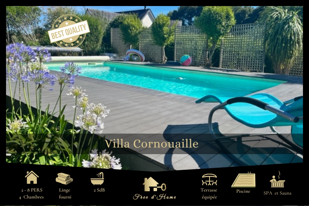 Villa de plein pied à 4 min en voiture du golfe du Morbihan, 5 min de Vannes et 20min de l’océan. Idéale pour 8 personnes La maison dispose de deux patios, piscine privée et jardin clos sans vis-à-vis. Salon séjour cuisine de plus de 70m2 avec un baby foot 4 chambres avec SDE La villa dispose dressings, lave linge, sèche-linge, matériel de repassage, aspirateur Nous mettons à disposition pendant votre séjour un kayak, 2 planches de surf, 2 bodyboards et 2 VTT adultes Possibilité stationnement