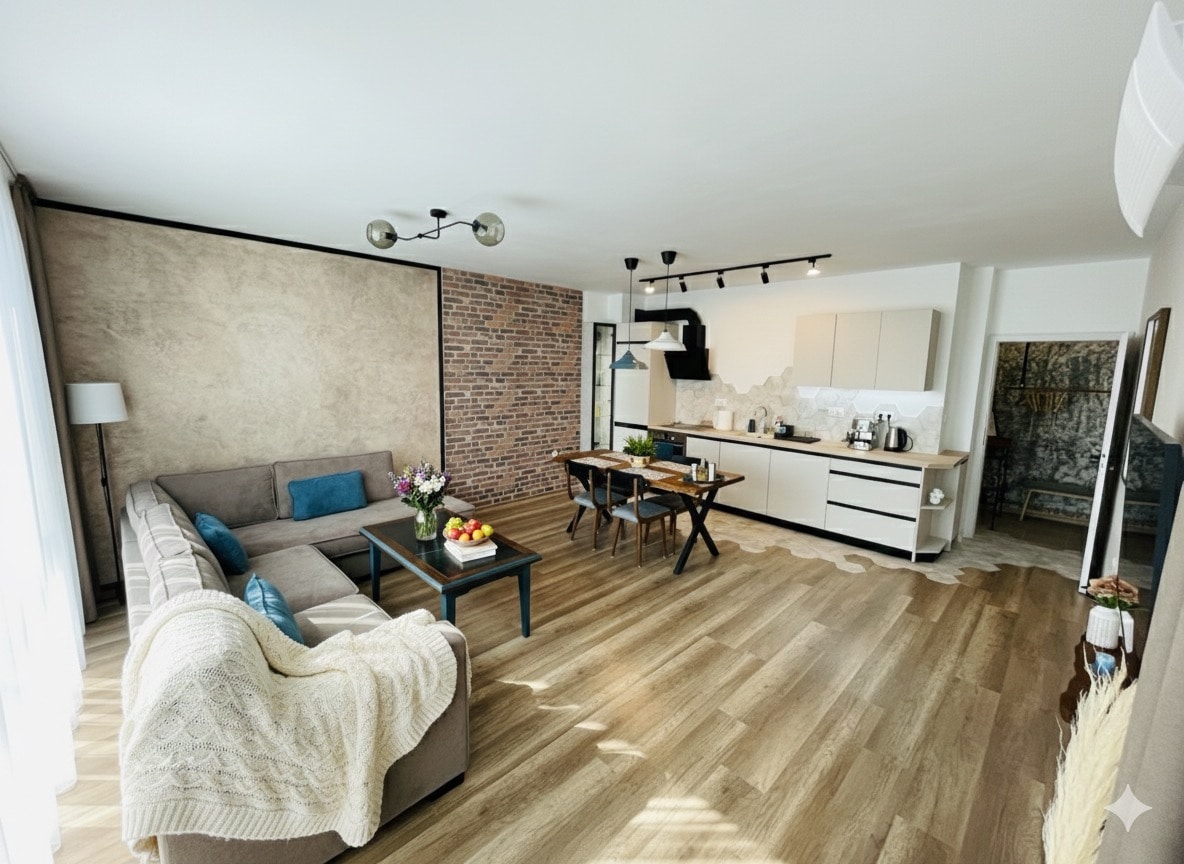 With a completely modern look, our one-bedroom apartment is now ready to welcome you! The elegant interior is carefully chosen to make you feel just like at home. The flat is fully equipped with everything you need either for your short or long-term stay. At your disposal is also a parking spot. Strong Wi-Fi connection is covering the entire property. The space is disinfected according to the Flat Manager Sanitary Standards.