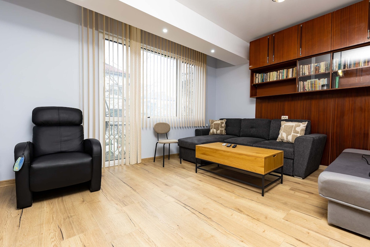 Recently re-built and fully furnished 2BDR apt with a private garden and parking would be the perfect spot for families, friends, and anyone visiting Plovdiv. Located in the heart of Plovdiv, just steps from the pedestrian area, it offers peaceful privacy within a quiet house. Enjoy being within walking distance to the best restaurants and attractions. Inside,you'll find a cozy living room with WiFi, cable TV, HBO, Netflix and a fully equipped kitchen to make your stay comfortable and enjoyable.