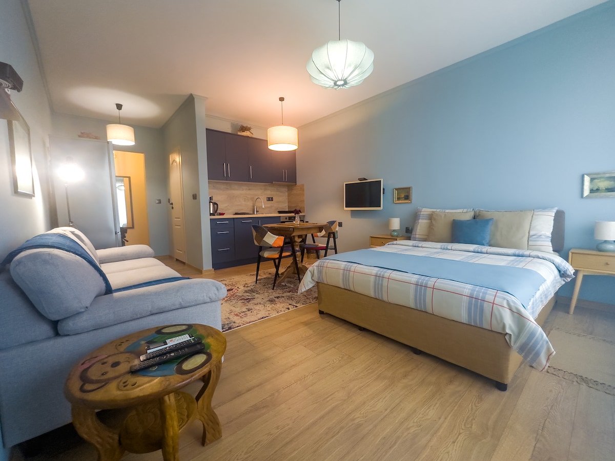 Добре дошли в чисто новото Студио 42! Разположено в модерна сграда с перфектна локация, то разполага с всичко, от което имате нужда за незабравим престой в Пловдив: напълно обордувана кухня, голям хладилник, съдомиялна, кафемашина, ютия, сешоар и телевизор със сателитни канали и стрийминг услуги. Комфотното Queen-size легло осигурява пълноценна почивка, както и големият, семеен диван в къта за отдих. В Студио 42 не се пуши, но на ваше разположение е тераса с гледка към тютюневите складове.