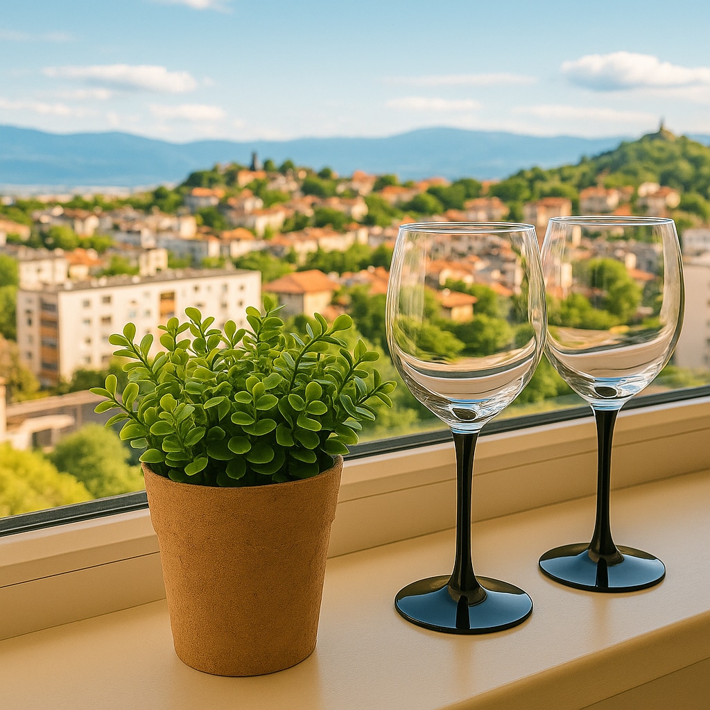 Private studio on the 15th floor with an impressive panoramic view of the Maritsa River, the Rhodope Mountains, and the Plovdiv Hills. Just a 10-minute walk to the Old Town and Kapana. Cozy, bright, and functionally furnished—ideal for a peaceful stay in the heart of Plovdiv. Access to the studio is through a shared corridor; the building is a 1980 EPC construction and has two elevators.