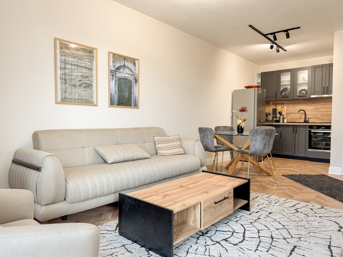 Bright and stylish 2-bedroom apartment in central Plovdiv, ideal for families or business travellers. Enjoy a fully equipped kitchen, spacious dining area, comfy beds, and modern bathrooms. Relax in the living room or sip coffee on the private patio. Free street parking andPublic or shared gym access included. Walk to the Maritsa River, top restaurants, shops, and historic sites in minutes. A perfect base for exploring Bulgaria’s cultural capital!
