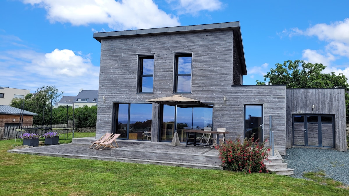 Posez vos valises, ouvrez les volets : l'océan est juste là, face à vous, au réveil et tout au long de la journée. Ici, tout est réuni pour vous offrir un séjour agréable, confortable et reposant. Cette maison récente, éco-conçue et baignée de lumière, offre de beaux volumes, des espaces communs conviviaux. Que vous soyez en famille ou entre amis, c'est l'endroit idéal. L’isolation renforcée, les matériaux naturels et les grandes baies vitrées assurent un confort optimal en toute saison.