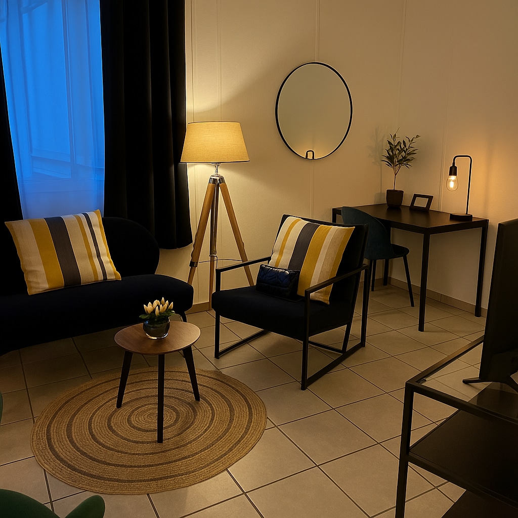 Ce studio situé au 2e étage (sans ascenseur) d’un bâtiment bourgeois conviendra parfaitement aux voyageurs ayant besoin d’un logement à proximité immédiate du Tribunal (90m) ou proche du centre-ville Literie confortable avec un couchage gigogne 160x200, FIBRE, télévision, espace cuisine, ventilateur, LINGE FOURNI ainsi que du GEL DOUCHE… l’équipement est pensé pour vous fournir tout ce que vous aurez besoin; le tout dans une déco chaleureuse qui vous fera vous sentir chez vous