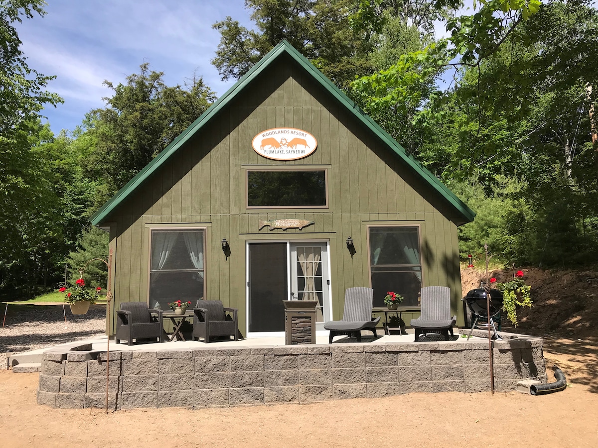 Located on 1.5 acres surrounded by a mixture of hardwood and evergreen forest, adjacent to the Woodlands Resort on Plum Lake. In the winter, you have direct access to the nearly 80 miles of groomed snowmobile trails maintained by the Sayner Barnstormers snowmobile club, via Woodlands Resort and accessing the trail system on Plum Lake. Plum Lake is 1000 acre, full recreational lake in Vilas County. Our tiny house is not on water but has 22' of sandy beach, lake access a short walk away.