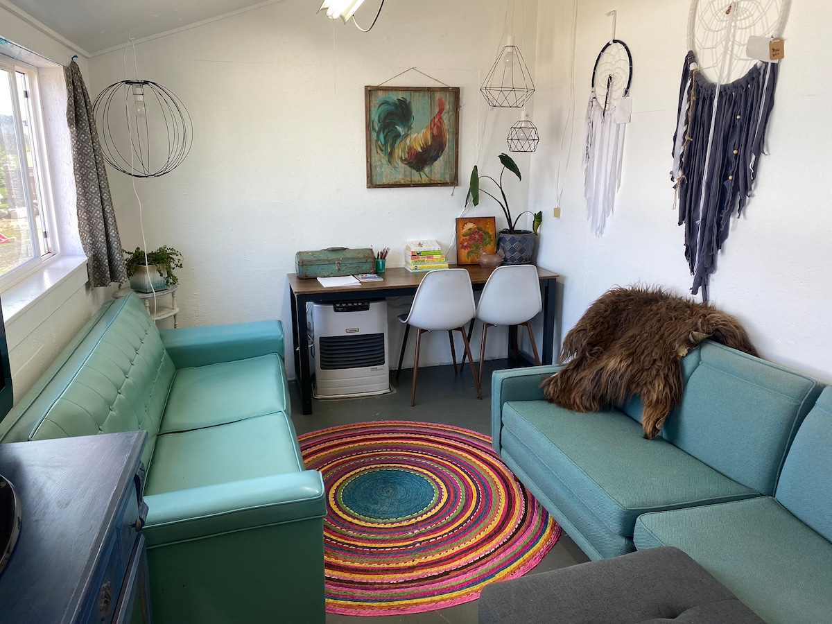 1 bedroom in-law apartment. Bedroom features a newly updated bathroom, king size bed and small futon. The front room has a desk and small kitchenette. The apartment has it's own entrance and is closed off from the rest of the house. There are no common areas besides the front yard. The house is located 10 to 15 minutes east of downtown Spokane.