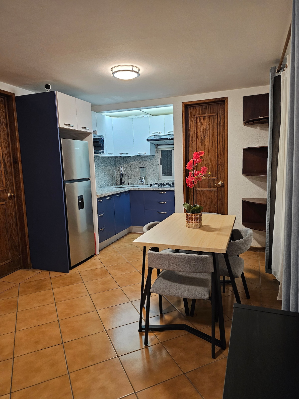 This is a 57 square meter apartment with very high brick ceilings, a large living room and dining area with a lot of light. Find authentic chic mid century furniture and several art pieces. The apartment has a private bedroom with queen size bed, closet and bathroom and a separate kitchen with supplies. It also has two small inner patios for light and ventilation. A lot of original architecture details from 1940 like floors, brick walls, ceiling and windows frames were conserved in the restoration. The project was recently featured in Architectural Digest Mexico and won several important architecture prizes: Architecture Masterprize and NoldiSchreck. Guest may use the whole apartment. You can also hang out in the inner patio of the condo and first floor lobby. There is also a laundry room with washer and dryer you can use next to the garage. Santa María La Ribera is a historic 19th-century neighborhood. Stroll in the Alameda Park opposite, then visit the nearby Museo de Geología. Here, gaze at mammoth and dinosaurs fossils, plus paintings by the famous Mexican master Jose María Velasco. You'll find a lot of public transportations options including subway, metrobus (direct line to the airport and historic center), train, bus and public bike system (ecobici). Metrobus Linea 4 norte is a direct connection from the airport T1 and T2 to Buenavista and back. Takes about 45 min. 30 Pesos/person, a rechargable Metrocard is need. Safe, quick and direct way to and from the airport.