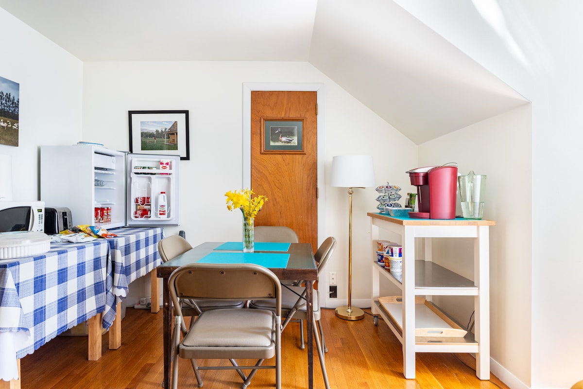 Relax, work, and unwind in “The Treehouse,” our serene, light-filled studio apartment nestled among the trees. Perfectly located in historic Rumford, RI, it’s just 3 miles from Brown, RISD, and Johnson & Wales, and 5 miles from Providence College. Enjoy quick access to the East Side of Providence, Newport, and Little Compton beaches. Conveniently close to Amtrak, bus lines, and the airport, it’s an ideal spot for exploring New England or visiting area colleges.