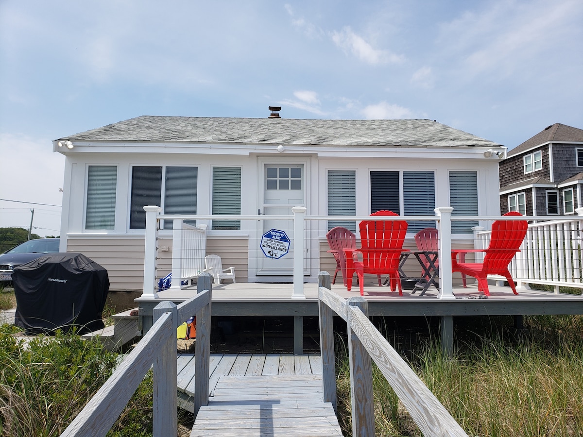 Experience an oceanfront getaway at the Shifting Sands, perched on unspoiled White Horse Beach. Enjoy stunning sunrises, sunsets, and night skies from this updated family cottage with a private beachfront deck & beach stairs, picnic table, & grill. Just steps from the beach for swimming, strolls, relaxing, or sea glass hunting. Nestled in the seaside community of Manomet, nearby Plymouth offers plenty to explore off the beach. Just drive up to the cottage, park, & the Atlantic Ocean greets you!