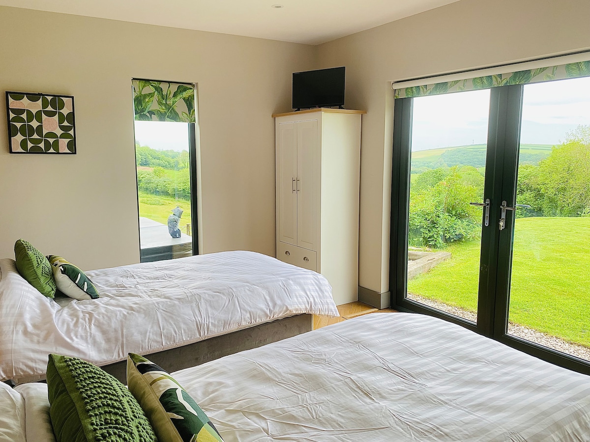 Hares Lodge is situated at the bottom of our farm road, giving uninterrupted views down the Tamar Valley and the river Tamar and on to Plymouth Sound. We are near the historic town of Tavistock, national trust house Cotehele, and of course Dartmoor National park which can be seen from the Lodge. We are five minutes away, by car, from the village train station which takes you into the historic maritime town of Plymouth. The Eden project is 1.5 hours away, and the beaches 30 minutes away.