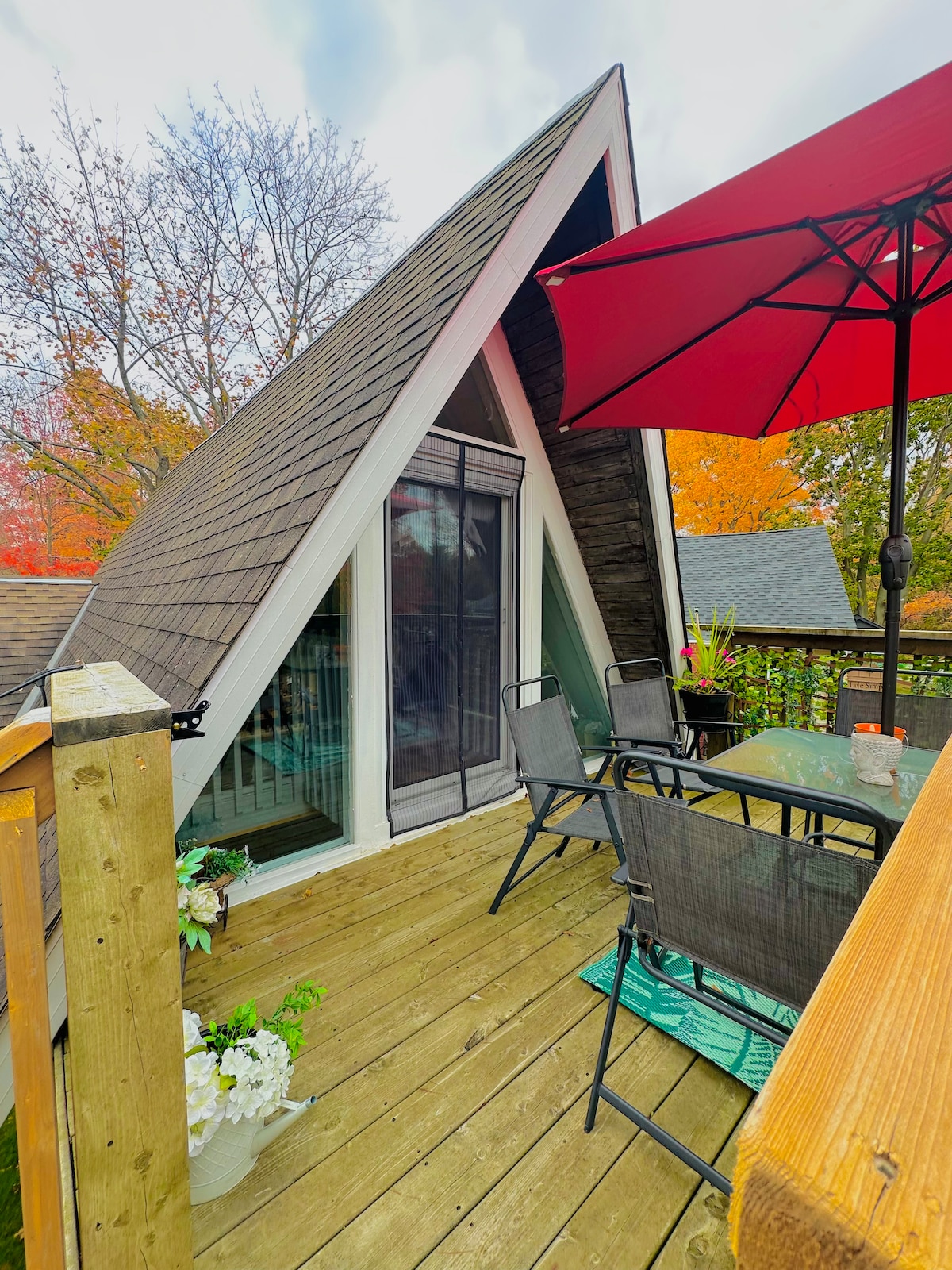 Find Bluecoast Bunkie nestled in the trees on a cliff overlooking Lake Huron. Fall asleep to the sound of the waves lapping on the shores and wake up to the choir of birds singing while enjoying a cup of artisan coffee or tea on your private deck. Take a stroll down long stretches of shoreline, seldom visited by others. Lounge on the private beach or beside the indoor salt water pool. Finish the day on the lookout while witnessing the most spectacular sunsets this world has to offer.