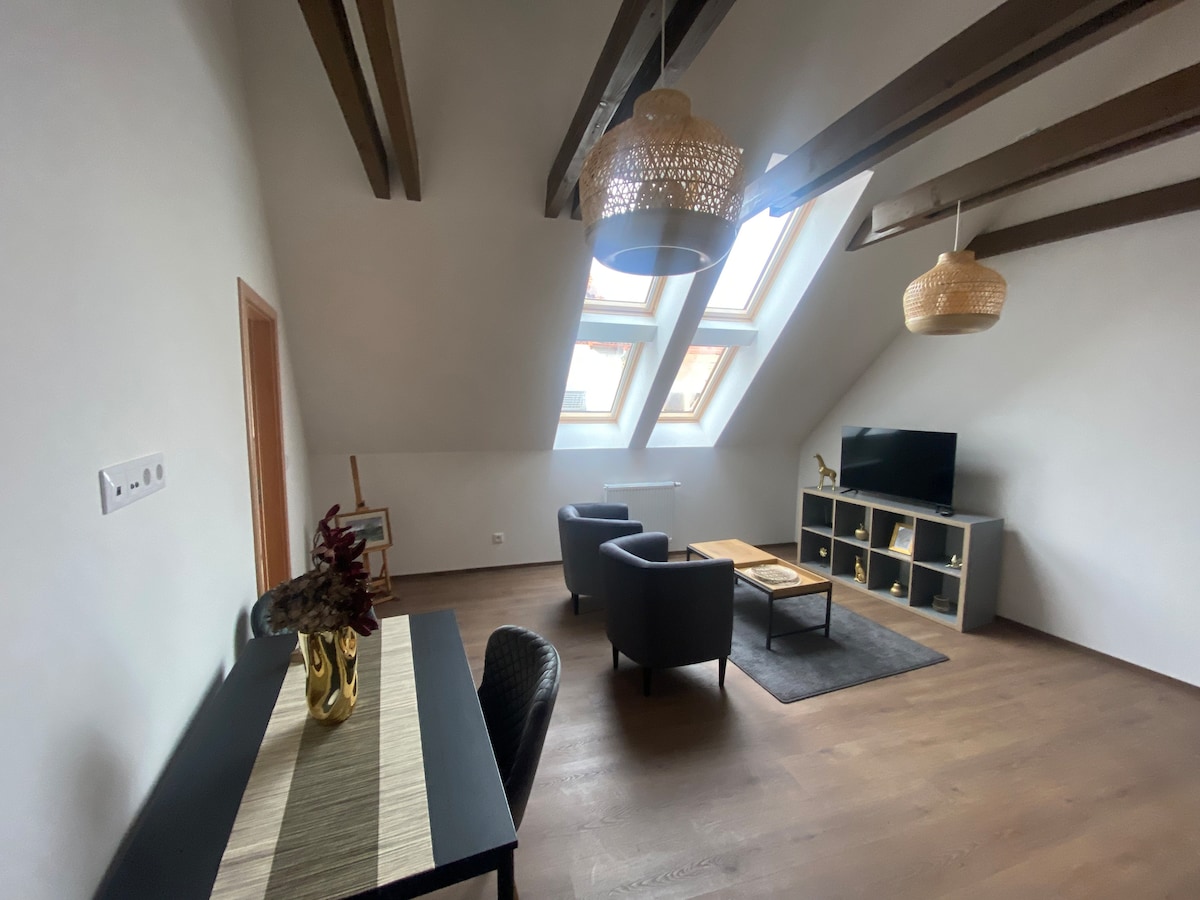 Welcome BREAKFAST and PILSNER BEER! Do I have your attention? Hi, I am Ota and I would like to welcome you in my apt created in 2/2025 Discover the charm of the city in the flat in the heart of the city! This is modern apt in historic center. What more? A spacious living room with a sofa and huge bed, a fully equipped kitchen, dishwasher, washmachine, smart TV, sound system, coffee maker, etc. Do not worry! The location of the flat allows you to go to main square in pajamas, It is that close!