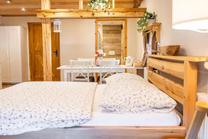 Dej si nohy na stůl a odpočiň si v tomto klidném, stylovém ubytování. V roce 2022 se zrodil náš sen a v roce 2024 se stal skutečností. Postavili jsme spolu s manželkou roubenku. Své pomoci a svými rukami. Otevřeli jsme pro vás nový roubený dům, který sice zachovává podobu tradičního stylu roubenky, ale je velice moderně vybaven. Je určen pro hosty, kteří chtějí strávit klidnou dovolenou kousek od Plzně v malebné krajině pod zříceninou hradu Radyně.