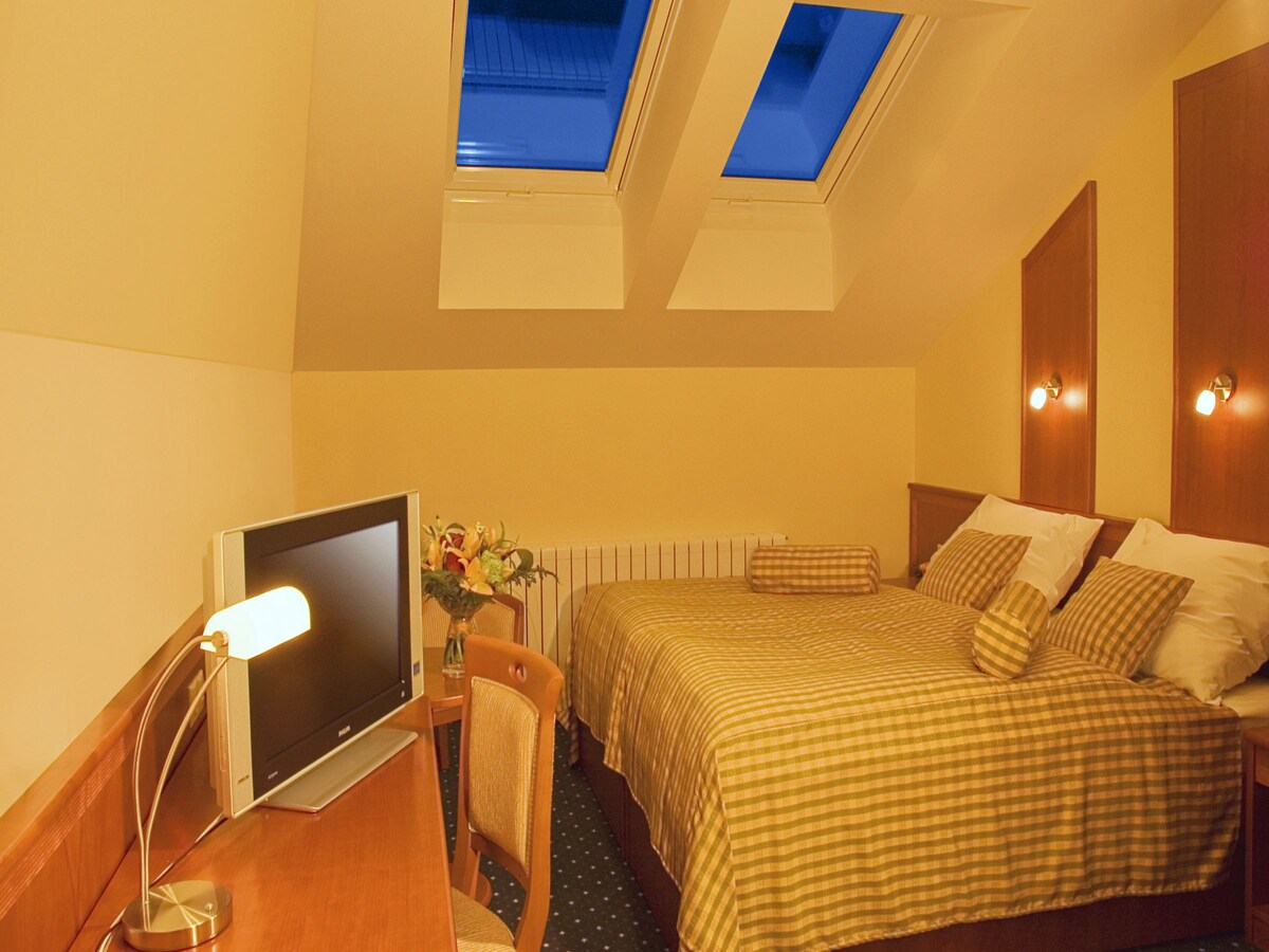 Double room (24 m2) room with a beautiful view to the Teplá river valley is furnished with a double bed, two comfortable seats and a table (can be used as a working desk too). There is a bathroom with shower and WC. Accommodation does not include meals.