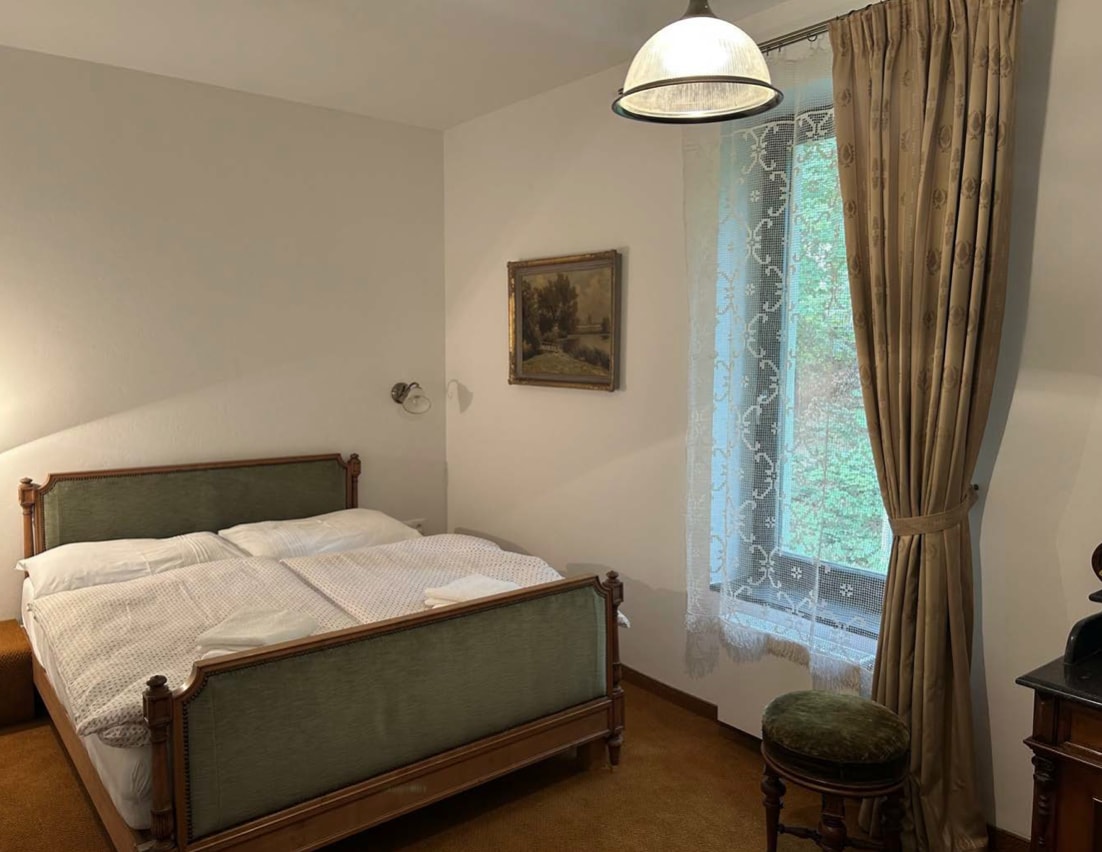 Nestled in the heart of Mariánské Lázně, this enchanting hotel room is set within a lovingly restored old mill, where history and nature exist in perfect harmony. The gentle murmur of the river flowing just outside creates a soothing soundtrack, wrapping the space in a sense of calm from the very first moment.