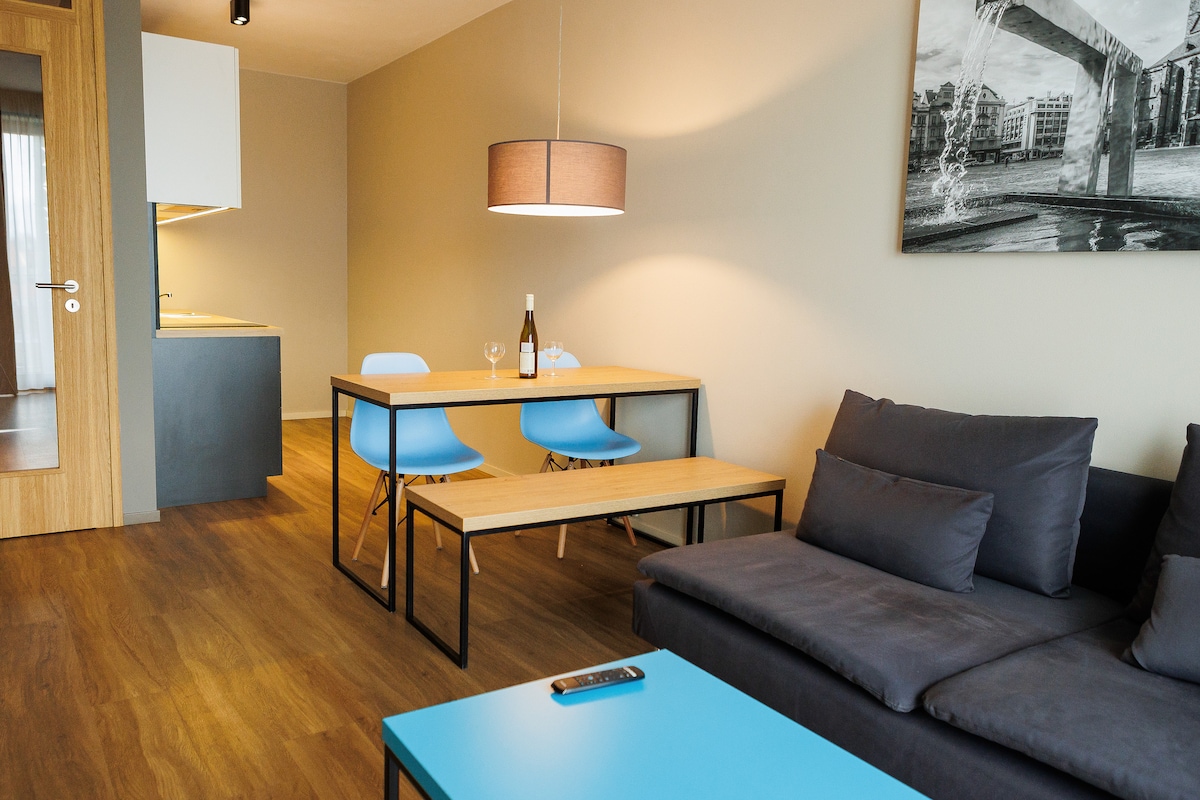 Our cozy aparthotel is located in the heart of the city and offers new apartments with a stylish interior, fully equipped kitchens, modern appliances (for example, High-End TV with Netflix) and much more! We are pleased to inform you that we also have contactless self check-in system. And we will always be in touch through popular messengers, so you can contact us at any time if you have any questions.
